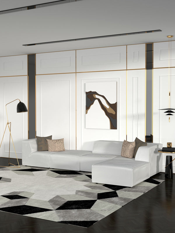Hex Rug is very bold design with black and white, grey colors as well as adding Geometric shapes. It will be the statement piece and has lots of dimensions.