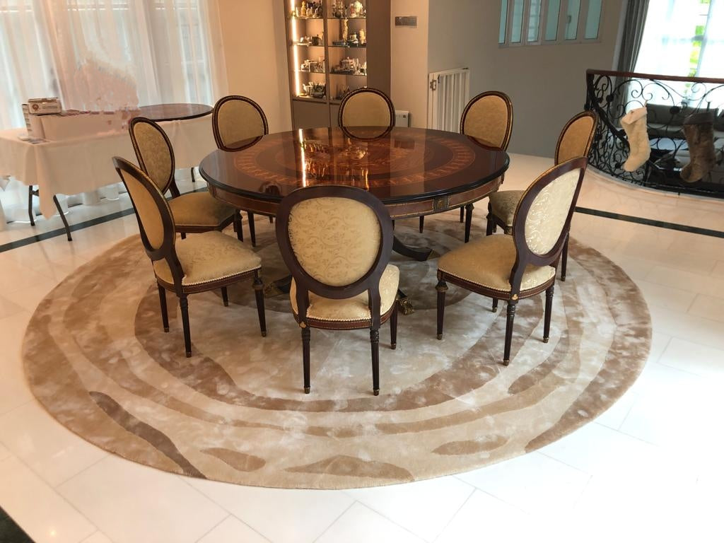 Round RugWe have gone through many designs and chose this design online and picked the right colors at our house. We loved how perfectly it blends in the interior and the luxury Tence silk material which is ultra soft.